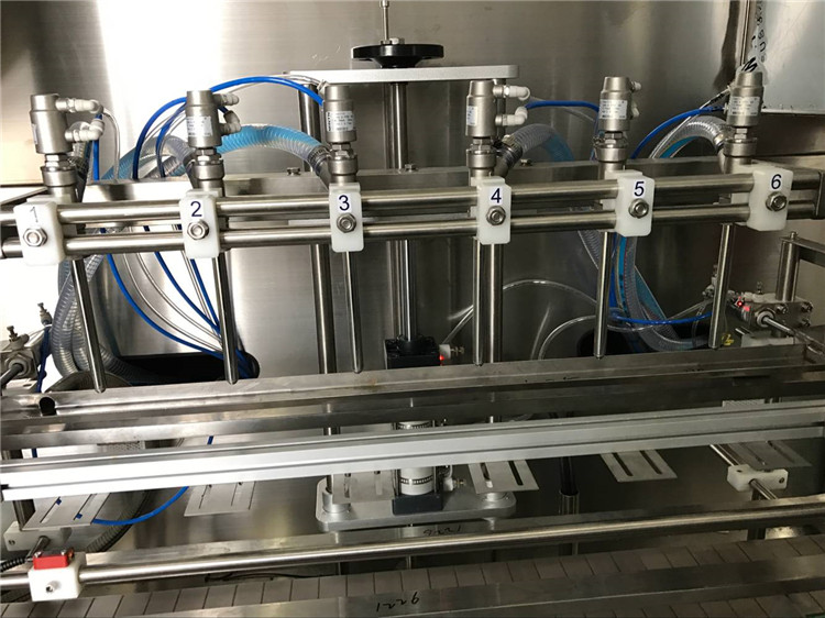 Тази производствена линия включва: бутална машина за пълнене с 4 глави, машина за затваряне, машина за запечатване на алуминиево фолио, машина за лазерно маркиране с мощност 10w, машина за лазерно маркиране, полуавтоматична машина за запечатване на картони, машина за етикетиране с две лица;
