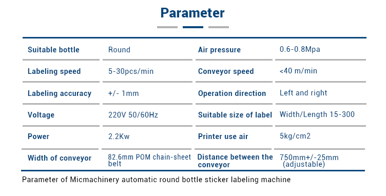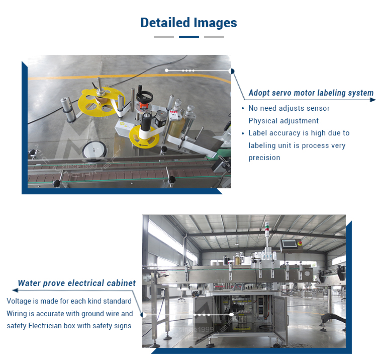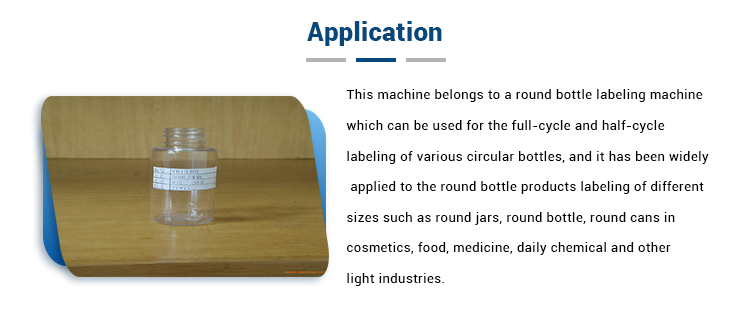 Тази машина принадлежи на машина за етикетиране на кръгли бутилки, която може да се използва за етикетиране на пълния цикъл и полу-цикъла на различни кръгли бутилки и е широко прилагана за етикетиране на продукти с кръгли бутилки с различни размери, като кръгли буркани, кръгла бутилка , кръгли кутии в козметиката, храните, лекарствата, ежедневната химическа и други леки индустрии. Състав на оборудването: електрически шкаф, транспортиращ механизъм, отделно устройство за бутилки, устройство за подвижен етикет, устройство за етикет с четка, 1 # двигател за етикетиране, операционна система и система за управление.